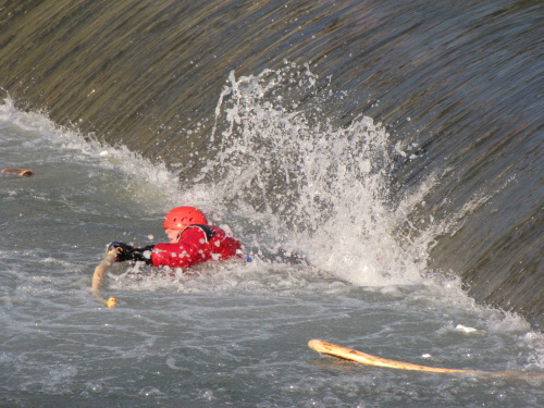 1. srpna 2010 v 18:25:55 byl vyhlášen poplach "Záchrana osob z vody, ulice Mostní". Nechvalně známý jez na pomezí Vratimova a Hrabové si vyžádal letos už několikátý výjezd jednotky SDH Vratimov. K události jsme vyjeli 3,5 až 4 minuty od vyhlášení poplachu (tzn. na místě jsme byli cca 6 minut od vyhlášení poplachu). Zde se ve válci splavu držel nad vodou mladý muž a podle informací okolostojících byla pod jezem ještě další osoba. Adama jsme navázali na lano za záchranou vestu, přebrodil po hraně splavu k tonoucímu a sklouzl k němu po tělese splavu do válce. Podařilo se mu jej zachytit a oba jsme přes vývar splavu vytáhli na břeh. Do válce jsme se vrátili na laně ještě třikrát s nadějí, že zachytíme druhého chlapce, který byl údajně už 5 minut před naším příjezdem pod vodou. Bohužel neúspěšně. Později jsme se ve spolupráci s HZS podíleli na pátrání ve člunech i v rojnicích pod jezem. Zásah končil okolo půlnoci po neúspěšném pokusu potápěčů PČR prozkoumat dno řeky pod jezem.