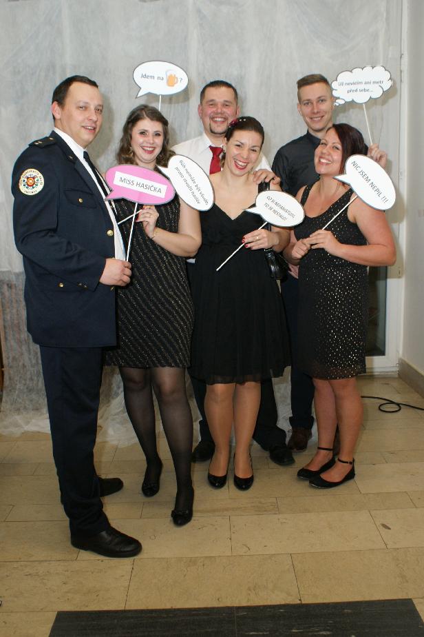 Vítaným spestřením plesu byl i hasičský fotkoutek, ve kterém se mohli hosté nechat vyfotit s hasičskou výstrojí a výzbrojí.