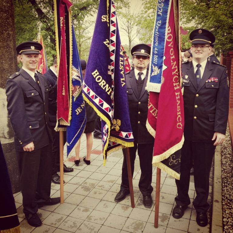 S hasičským praporem na vratimovké pouti