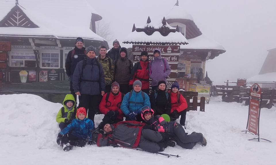 U sochy jsme udělali skupinové foto a vydali se na cestu dolů jinou sjezdovkou. Vše probíhalo hladce.