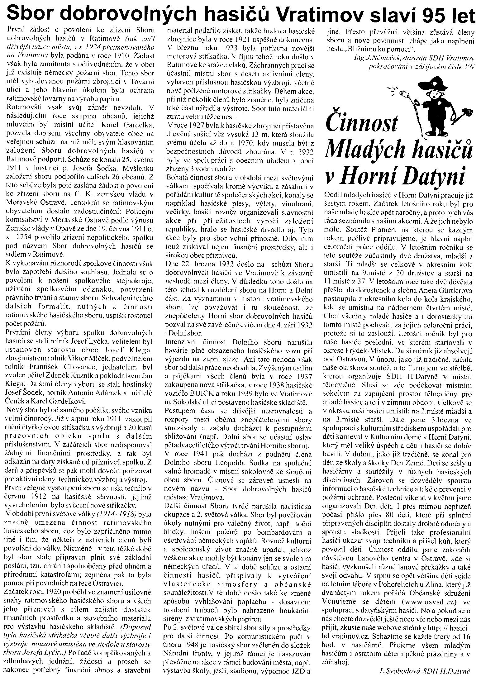 SDH sláví 95 (historie sboru), Vratimovské noviny, 1.7.2006