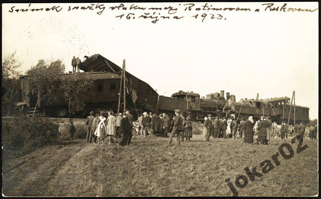 Článek popisující železniční nehodu dvou osobních vlaků na trati mezi Vratimovem a Paskovem 16. října 1923.