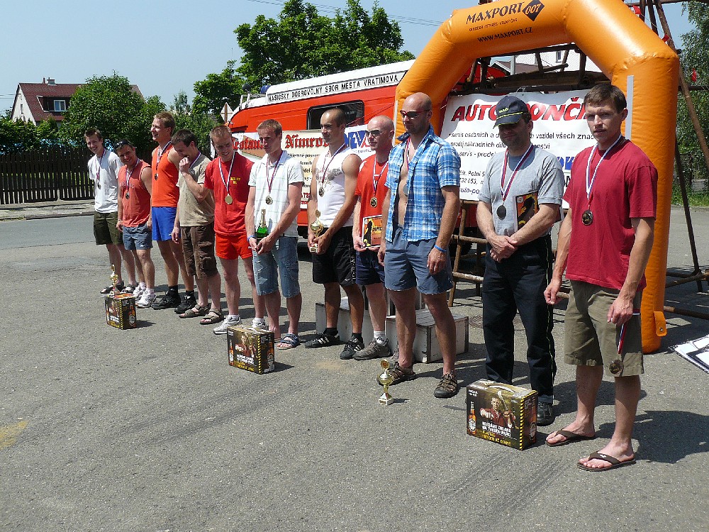 V sobotu 12.6. 2010 se u hasičské zbrojnice ve Vratimově stejně jako v minulých létech uskutečnil již 9.ročník závodu TFA Vratimov CUP. Celkem bylo přihlášeno 53 hasičů, ale přijelo jich jen 33. I přesto, že bylo neuvěřitelné horko, tak hasiči předvedli nadlidské výkony. V kategorii družstev se na třetím místě umístilo družstvo HZS Zlínského kraje se součtem časů 10:57,93, na druhém místě družstvo s názvem Letiště s časem 10:36,92 a vítězným družstvem se stala Marná snaha s časem 9:45,07. V kategorii jednotlivců se na třetím místě umístil Ladislav Mikulecký z HZS Lanškroun s časem 2:20,45, na druhém místě Aleš Navrátil z HZS podniku Deza s časem 2:11,50 a vítězem se stal Jiří Mikulecký z SŽDC Česká Třebová. Nesmím zapomenout na jediného zástupce v kategorii nad 40 let Josefa Frýdla ze Zlínského kraje s časem 2:54,48, který obsadil pěkné 19. místo. Z domácích borců se nejlépe umístil Jiří Rogowski na 28.místě a Rosťa Honus na 32. místě. Všem závodníkům gratulujeme a sponzorům děkujeme.